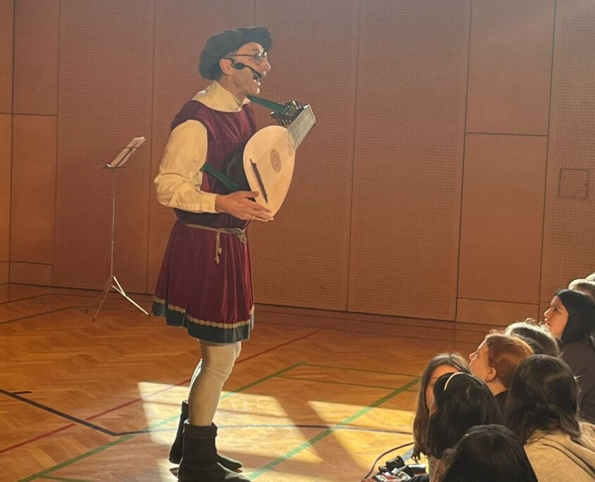 Sie sind gemeinsam mit den Kindern der 1. Klassen durch die Musikgeschichte gereist. Mittelalter, Renaissance, Klassik, aber auch Walzer, Rock‘n‘Roll und Rock durften nicht fehlen!